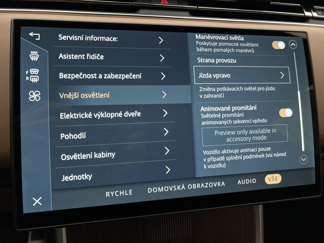 - ambientní osvětlení interiéru