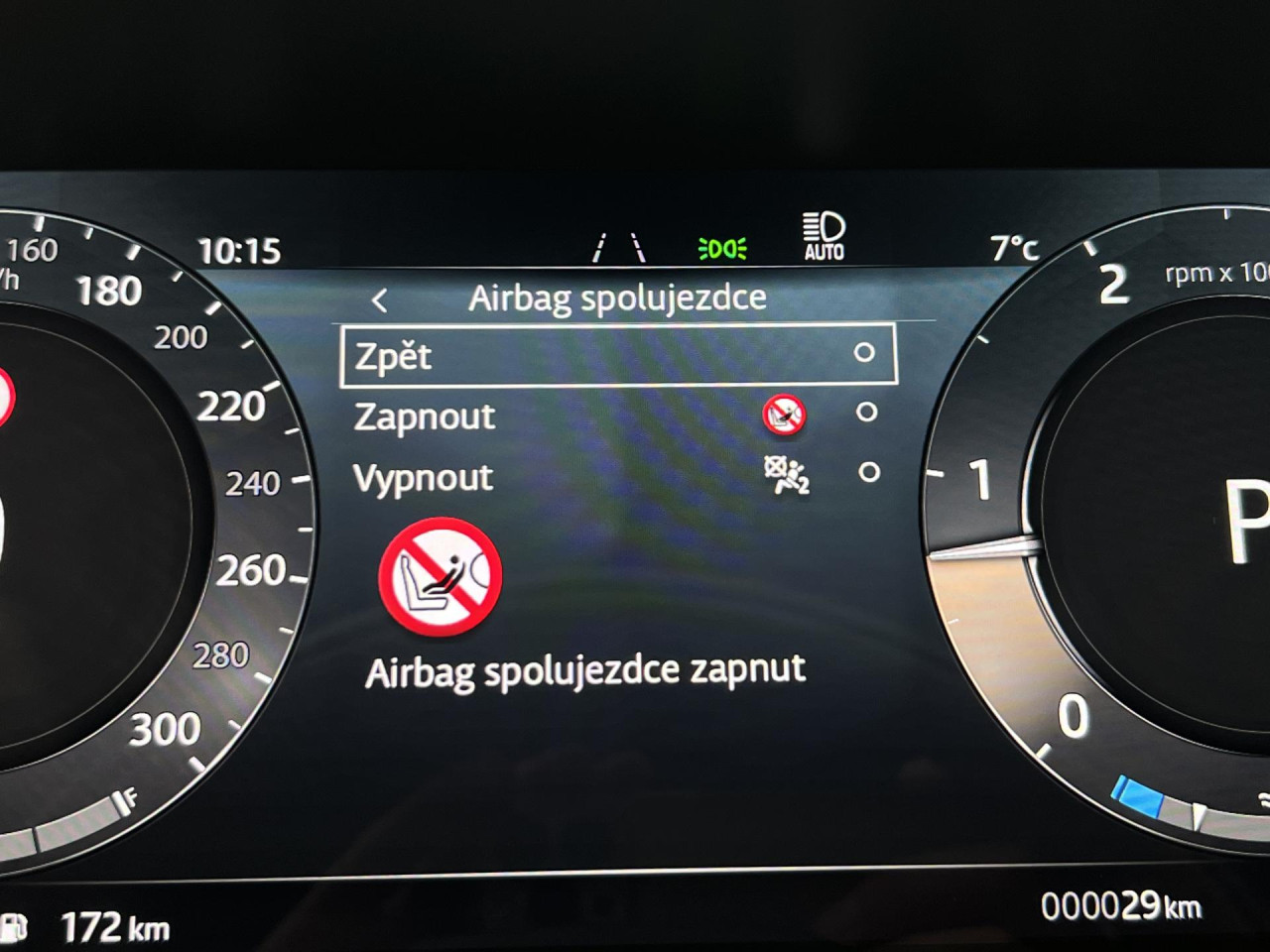 - deaktivace airbagu spolujezdce