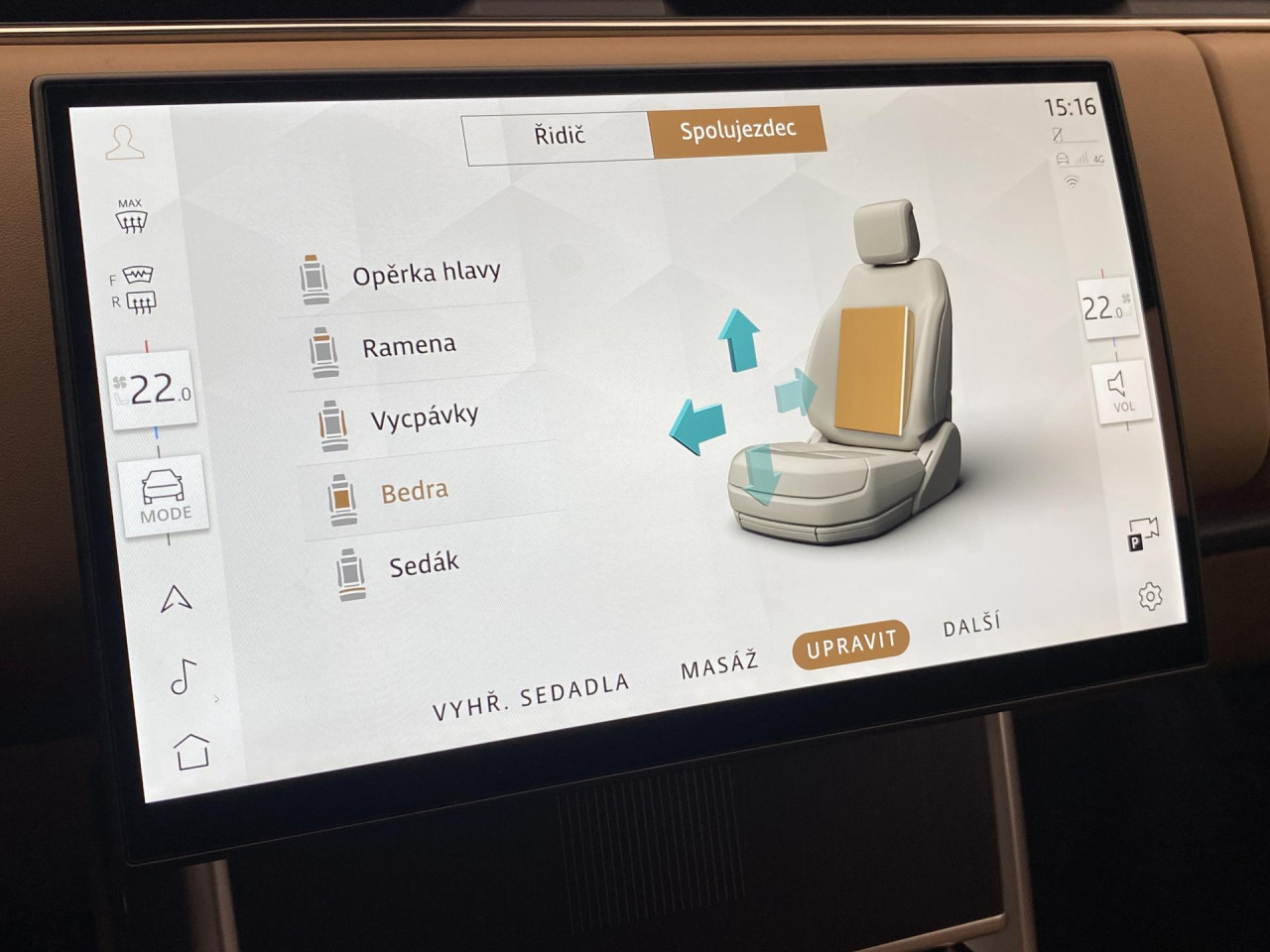 - sedadla s funkcí masáže - přední